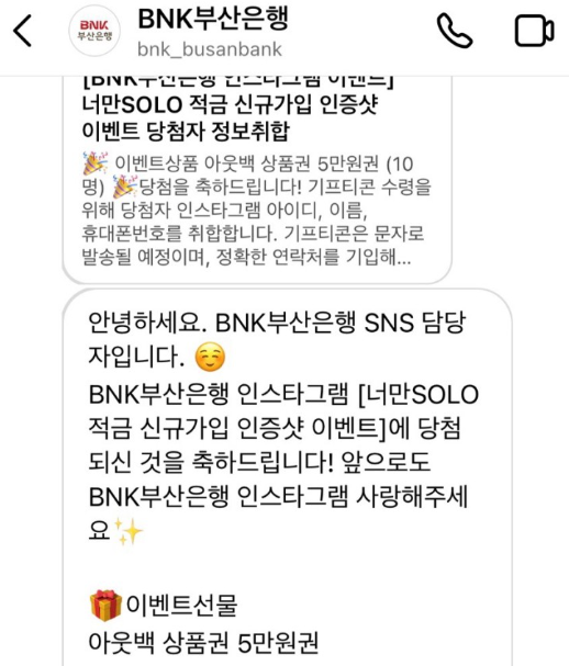 하지만 그래도 적금 가입 후 너만솔로적금 인스타그램 이벤트까지 참여해서 아웃백 상품권을 받았습니다 ㅎㅎ